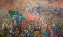 Previously the Casa da Câmara, it currently houses the City Hall. Its construction was initially commissioned by Gomes de Freitas in 1858. It was later renovated by Miguel Carosillo in 1934, who added eclectic and simplified elements. At the entrance hall, a large oil painting by artists Helios Seelinger is displayed, titled “Allegory of the cause of spirit of the Revolution”, and measures 122 x 202 in. The artwork was created in the mid-1920, and it belongs to the Historic Farroupilhas Museum permanent collections. It was taken from Piratini Palace, in Porto Alegre, to the city of Piratini. The historical record is not clear about the exact date, but it is known that the painting arrived in Piratini between 1953 and 1959.