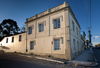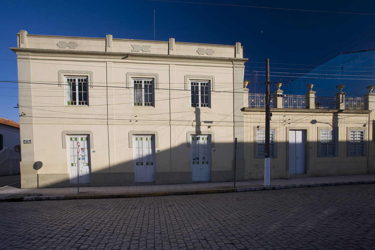 Edificação térrea com aberturas alinhadas com açoteia protegida por gradis em ferro estruturados por pilaretes sobrepostos com jarrões. Esquadrias com tampões cegos e janelas de guilhotinas.