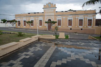 De composição simétrica, o prédio estrutura-se em terreno inclinado sobre embasamento, com corpo central elevado. No corpo central, porta em duas folhas e verga em arco pleno; nos laterais, quatro janelas intercaladas por pilastras, com elementos decorativos em linhas retas e curvas. As janelas, de abrir à francesa, com vergas e bandeiras retas. A platibanda fechada e no corpo central, elevado, as armas da República Brasileira.